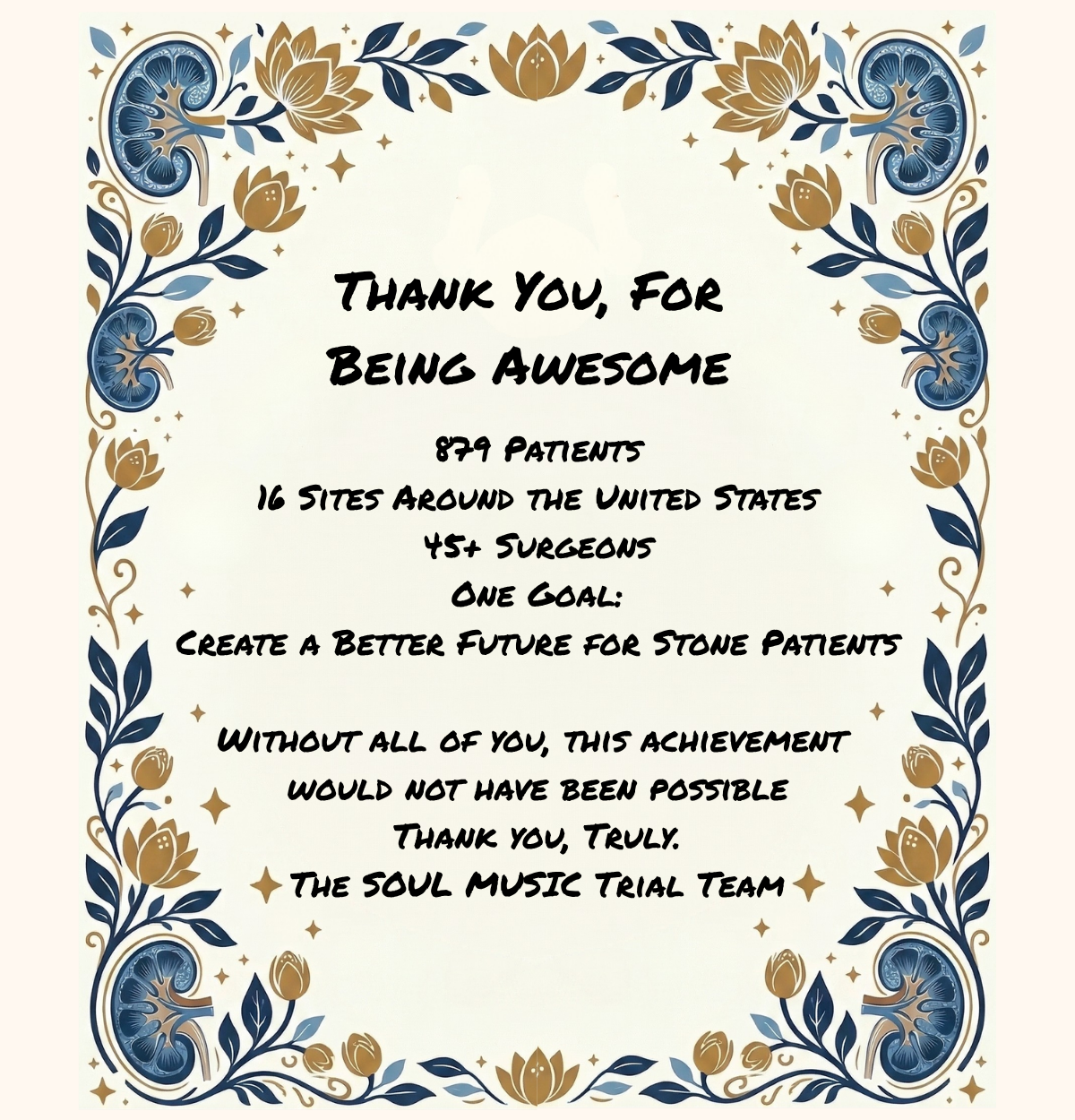 • Undergoing unilateral ureteroscopy and lithotripsy and stent placement for stone disease (participants may have contralateral stones, as long as these are asymptomatic and not being treated concurrently)